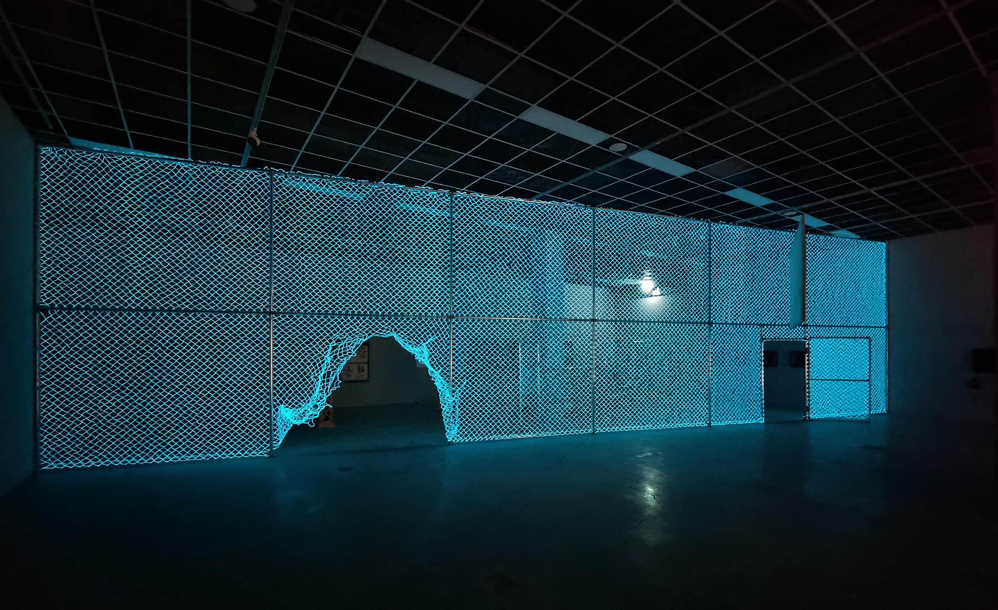 <em> EL와이어, 1.8m x 11m x 0.5m </em>2021 Wire net(Oryundong) <em> EL-wire, 1.8m x 11m x 0.5m </em>2021